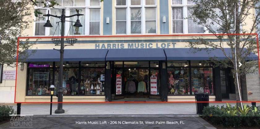 DescriptionThe Harris Music Loft is located along Clematis Street in West Palm Beach, Florida. Surrounded by trendy retailers and restaurants, 206 N Clematis St is an ideal location for any retailer. The property is within walking distance to the waterfront and beautiful Flagler Drive.HighlightsPrime opportunity in the heart of West Palm BeachSteps from Starbucks, Rocco’s Tacos, Design within Reach, Brightline Train, The Ben Hotel, Flagler Waterfront, County Courthouse, City and County offices.Newly renovated Clematis street scapeDO NOT DISTURB EXISTING TENANT
