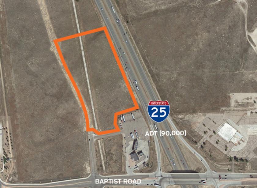 The property consists of two adjacent parcels located on the west side of Interstate 25, immediately north of the Diamond Shamrock truck stop. Owner will subdivide the site as needed.