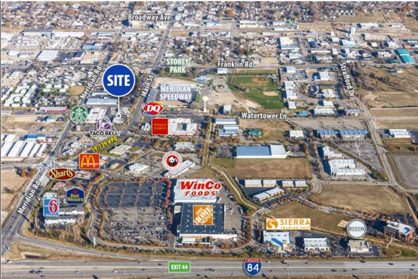 Built-out restaurant space . Great opportunity for fast food or quick casual.Patio seating available.Excellent visibility with access from four streets!Great access from I-84 with excellent co-tenancy in immediate area, including Starbucks, Wendy’s, Subway, Jimmy John’s, Winco and Home Depot.Pylon signage on Meridian Road and Main Street.Tenant Improvement Allowance negotiable.