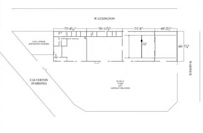 +/- 18,000 SF Warehouse w/ Yard FOR SALE• +/- 1 Acre• All Drive-In Access—4 Drive-In Doors• Heavy Power—3 Phase 800 Amps• +/- 3,000 sf Office Space• Crane Served (7 Tons)• I-1 Zone—Industrial Baltimore City• Enterprise and HubZone Qualified• Call For More Information