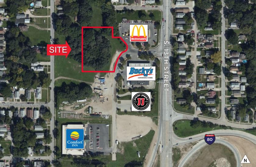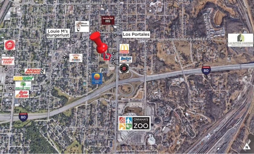 36,558 SF (0.83 acres) of land for sale. Site is to be sold “As Is” and would be a perfect location for a C-store, restaurant or owner user commercial/office space. Area tenants include McDonald’s, Jimmy John’s, Bucky’s Convenience Store and Comfort Inn. Located just off of I-80 on South 13th Street, near The Henry Doorly Zoo, with 1.1 million visitors annually, Lauritzen Gardens and the new development along North 13th Street in Downtown Omaha.