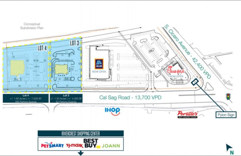 1-4 Acres DivisibleLocationFreestanding pad sites with drive-thru optionsExcellent visibility to Cicero Avenue (42,400 VPD) Cal Sag Road (13,700 VPD)