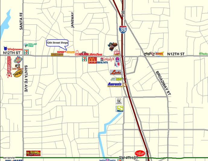 Newly remodeled strip center in Moore, Ok 1/2 mile west of I-35.Entrance points from NW 12th St and N Janeway Ave, make easy access. The center is located in Moore, OK, which is one of the fastest growing suburbs of OKC. The Property is located less than 13 miles from Downtown OKC, Will Rogers International Airport and Tinker Air Force Base. In addition, the University of Oklahoma (>31,000 students) is only 9 miles away from the site.