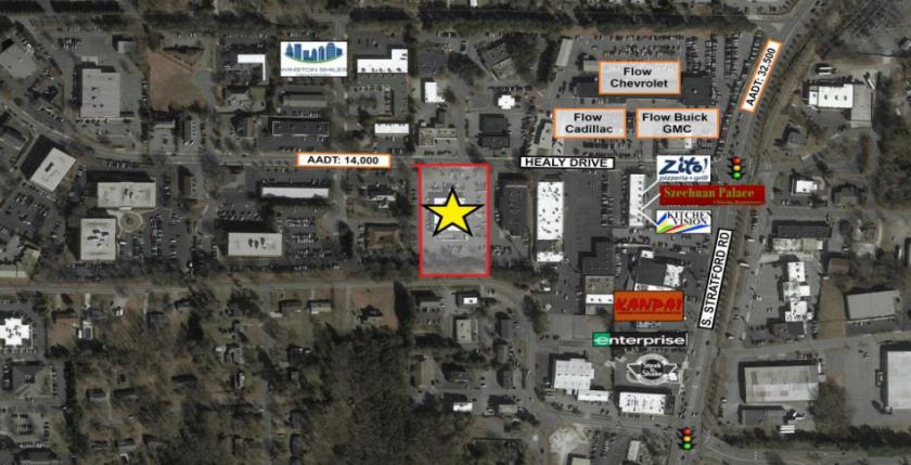 Centered between I-40 98k VPD and Stratford Road 33k VPD