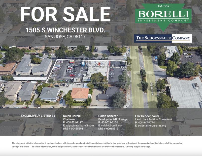 1505 South Winchester Boulevard in San Jose includes 0.909 acres of land