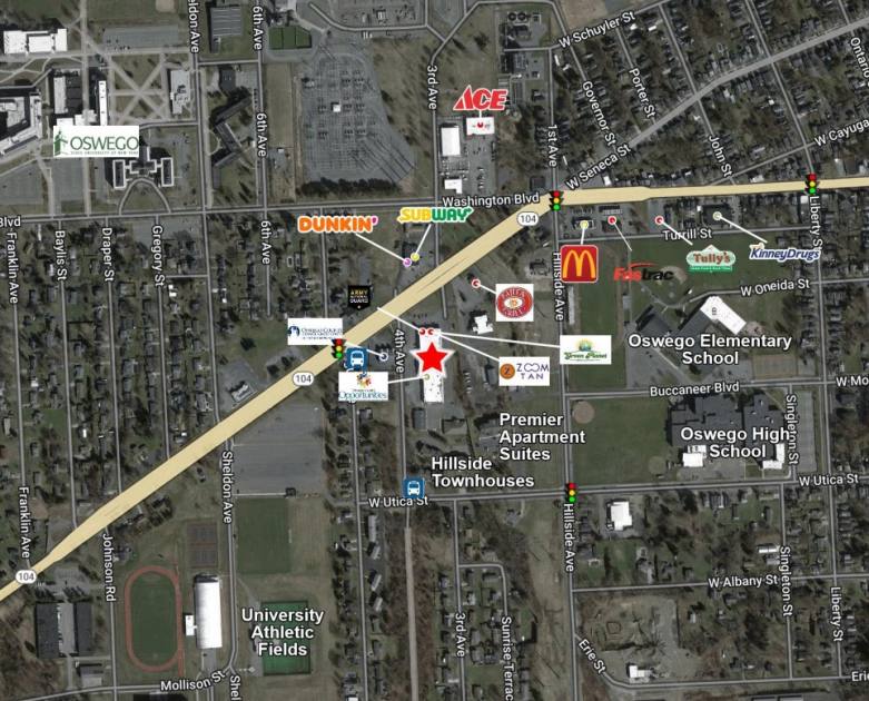 1,256 SF inline space located at Hillside Commons, a 40,000 square foot lifestyle center. $10.00 PSF / $3.75 NNN. Co-tenants include: Green Planet Grocery, Zoom Tan, Flourish Beauty and Spa, Phones R Fixed, armed service recruiting office, Oswego County Opportunities, private professional office suites.