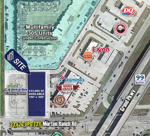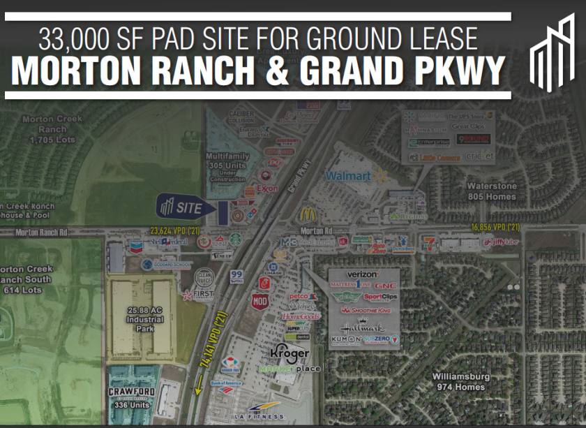 • Direct access to site from Grand Parkway with curb cuts on both Peek Rd and Morton Ranch Rd