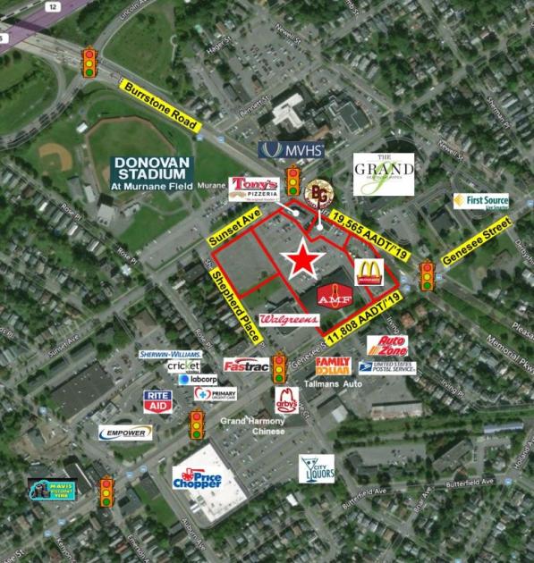 Multiple building assemblage with existing investment income and additional acreage for development. Offering consists of 1700 Genesee Street (McDonald's), 1724 Genesee Street (AMF Pin-O-Rama Bowling), 7 Burrstone Road (Bagel Grove), 23 Burrstone Road (Tony's Pizzeria), and a 1.31+/- vacant lot on Sunset Avenue totaling 25,658+/- SF on 6.58+/- acres. Please contact James Dylan Furney (315) 225-8571 or Jeffrey D'Amore (315) 725-3510 for more information.