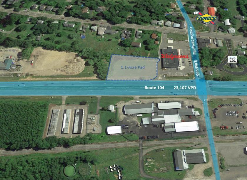 Introducing the stunning 1.1-Acre Retail Pad located at 1558 Rte 104, Ontario, NY. This prime piece of land offers an incredible opportunity for businesses looking to thrive in a high-visibility location. Situated just south of Lake Ontario, this property benefits from its strategic position with frontage and visibility on Route 104. With a traffic light on the corner and neighboring popular retailers such as Walgreens, Big Lots, and McDonald's, this is a location that guarantees exposure and foot traffic. The 1.1-acre lot provides ample space for various business ventures, including the potential for a drive-thru. The zoning, classified as Business, opens up numerous possibilities for development and growth. In addition to its prime location, this property boasts impressive demographic data within a 5-mile radius. With a population of 17,902 and a median household income of $95,329, the market potential is vast. Don't miss out on this exceptional opportunity to secure a highly sought-after retail pad in Ontario, NY. Contact us today to learn more about this exceptional property and how it can be the perfect location for your business.