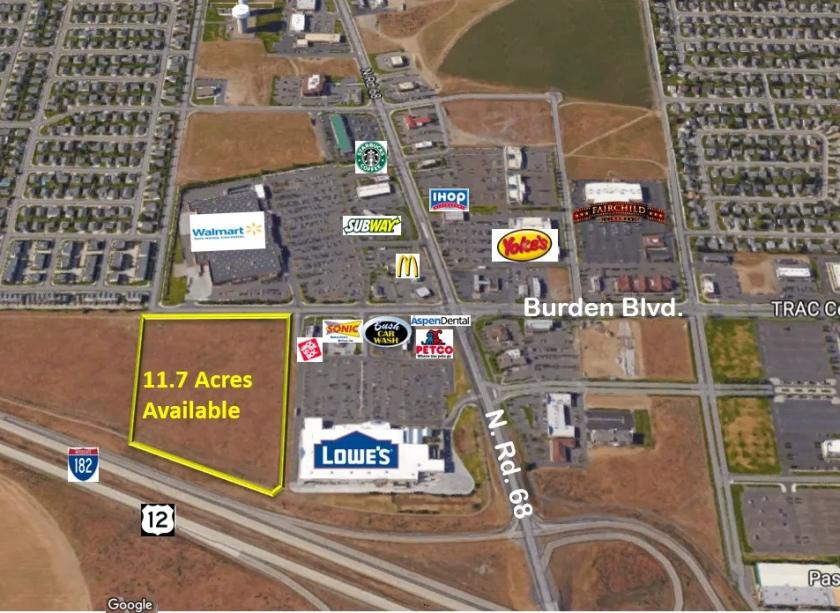 Neighboring Tenants: Lowe’s, Jack in the Box, Sonic Drive-In, Walmart, Yoke’s Fresh Market, Columbia Bank, Holiday Inn Express, TRAC Center Event Venue, Gesa Stadium, Bush Car Wash, Fairchild Cinemas, IHOP, Petco, Aspen Dental
