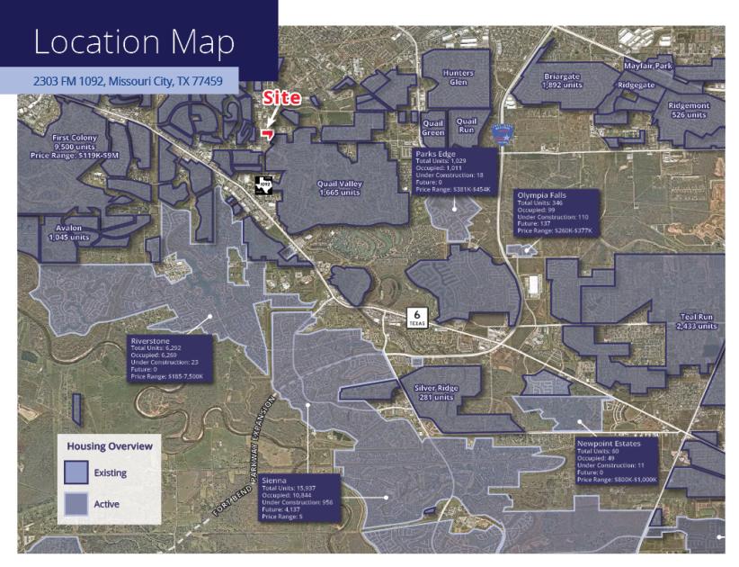 The population within 1 mile of 2303 FM 1092 Road Missouri City, TX 77459 is 10,554 people.